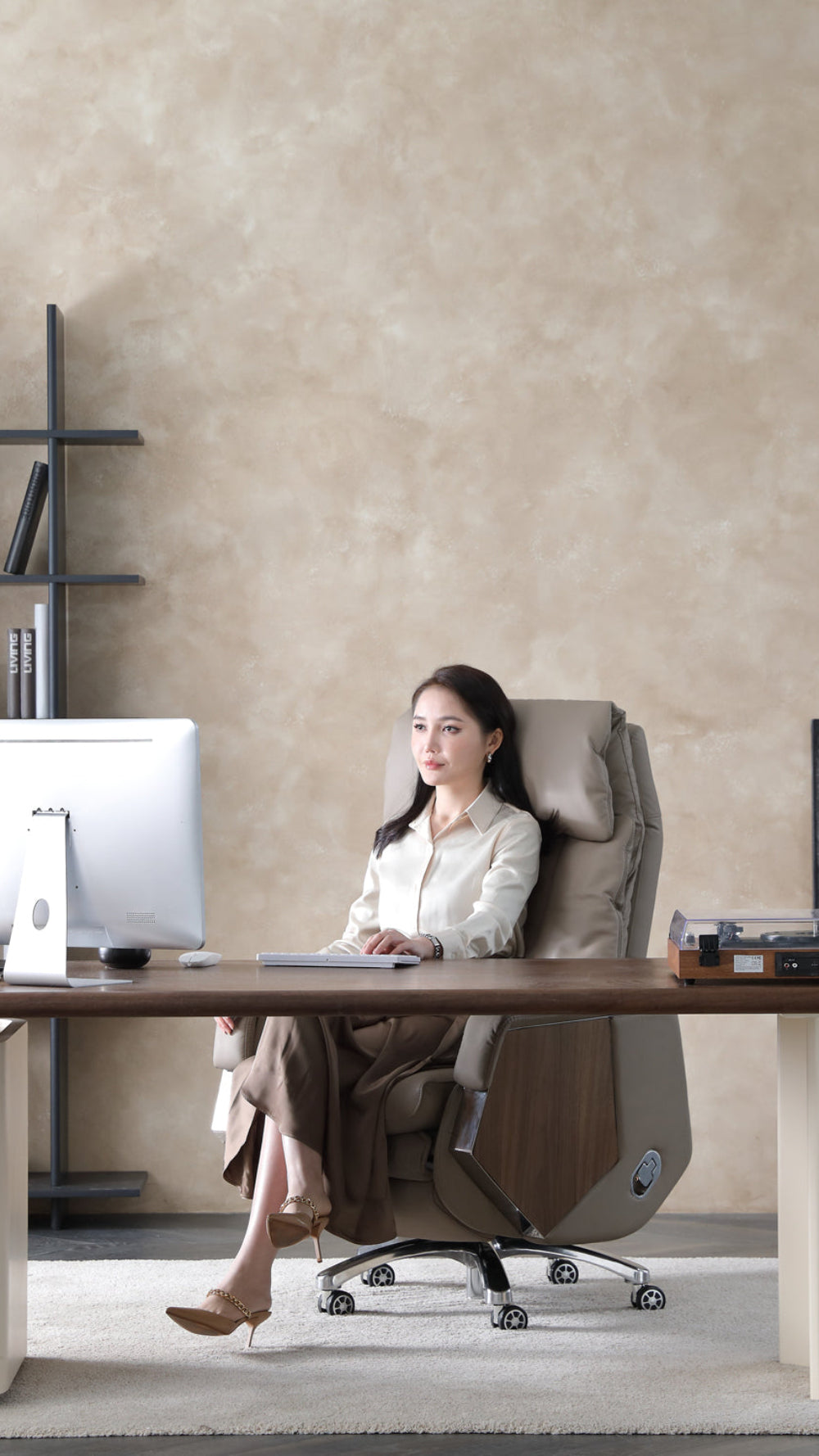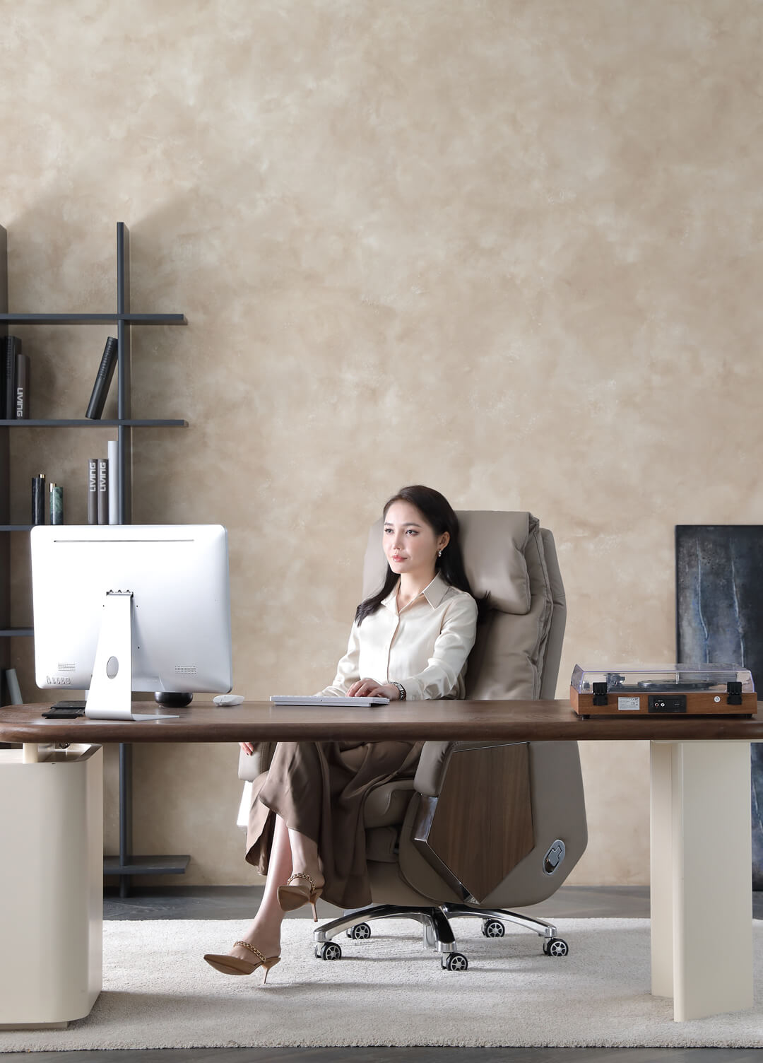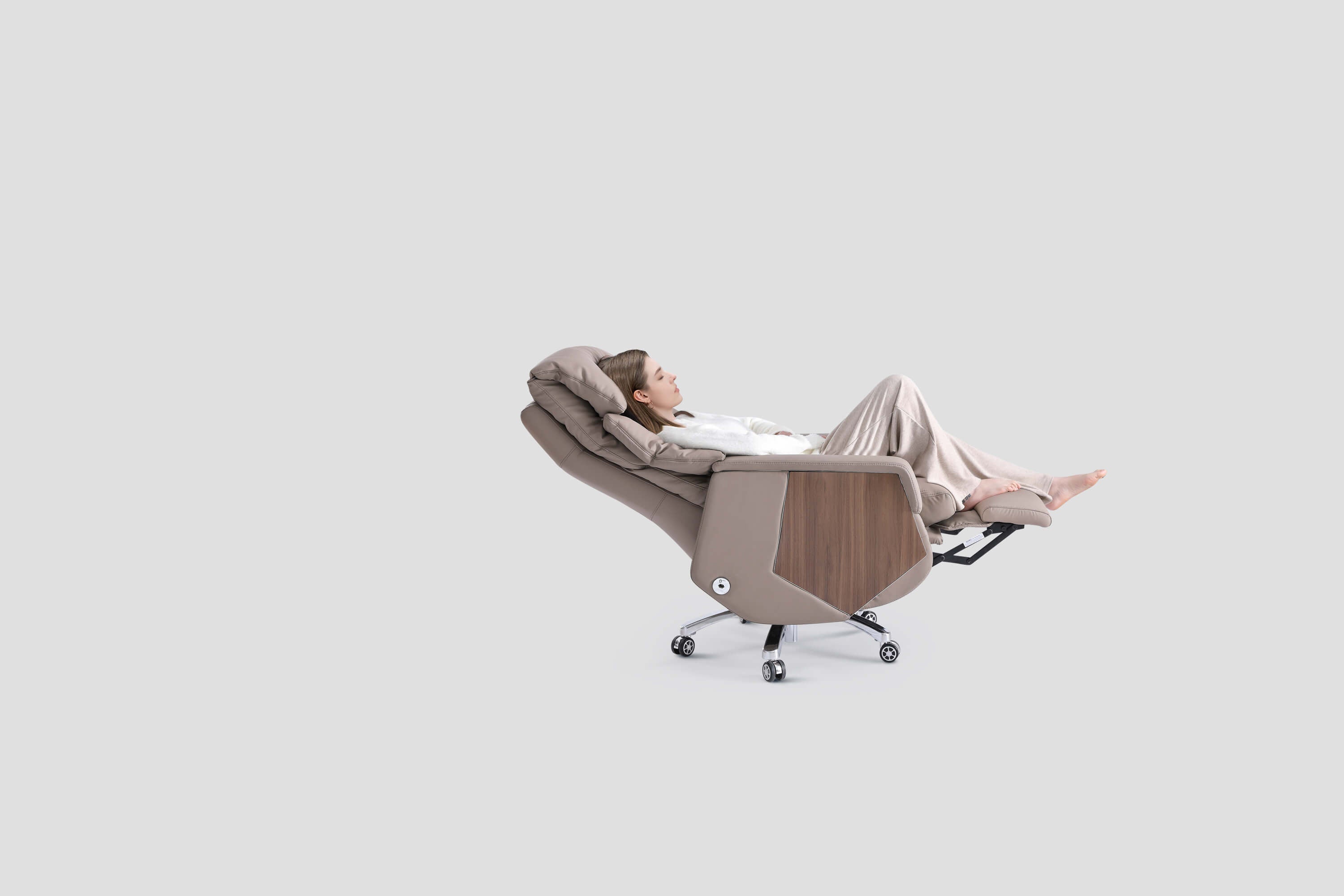 Der elektrische Bürostuhl Emiah S300 verkörpert Eleganz und hochwertiges Design und ist ideal für Geschäftsleute und Home-Office-Benutzer. Er ist in fortschrittlicher, exquisiter Verarbeitung gefertigt und besteht aus hochwertigem Rindsleder und Schaumstoff, kombiniert mit intelligenten elektrischen und Massagefunktionen. So können Sie Schwerelosigkeit beim Sitzen und Liegen erleben und erhalten ein luxuriöses, komfortables und intelligentes multisensorisches Erlebnis.
