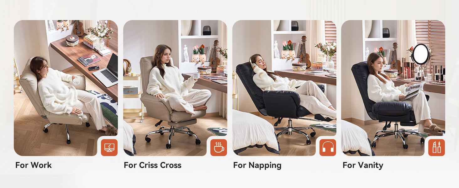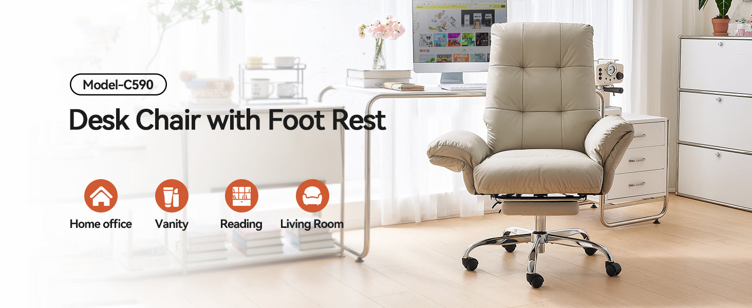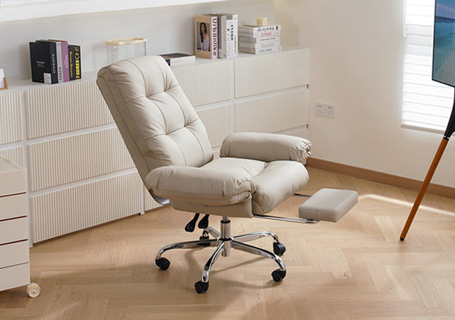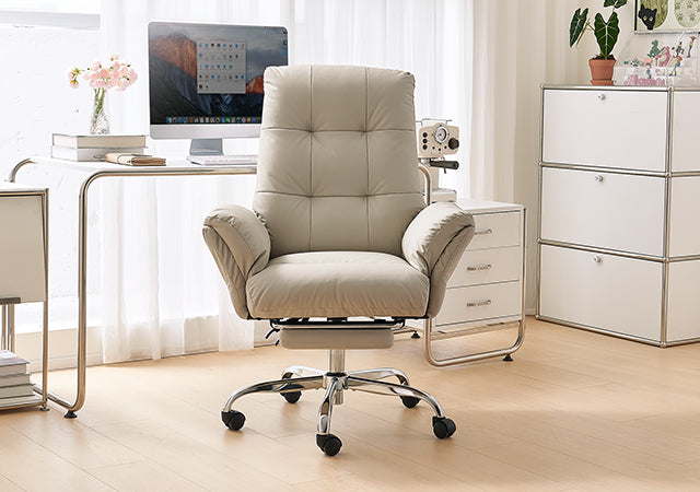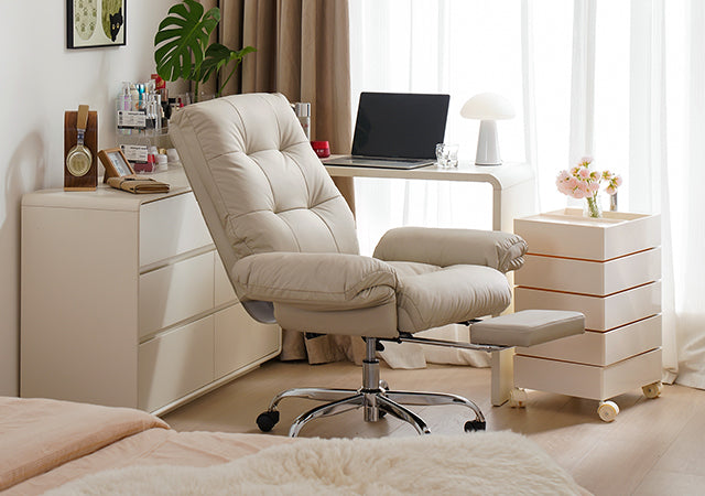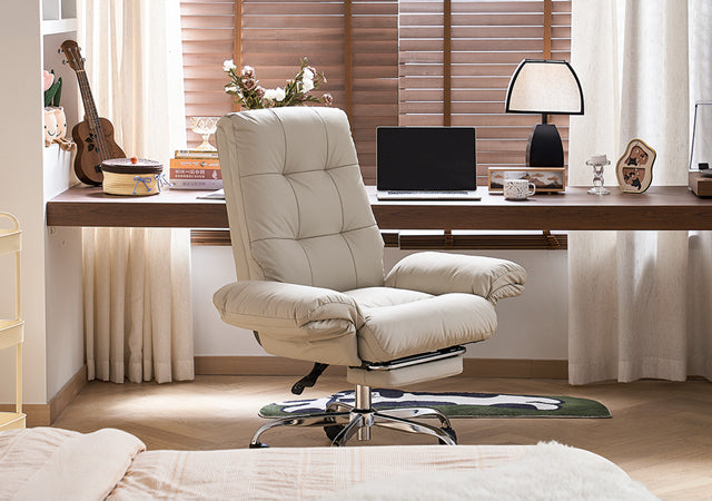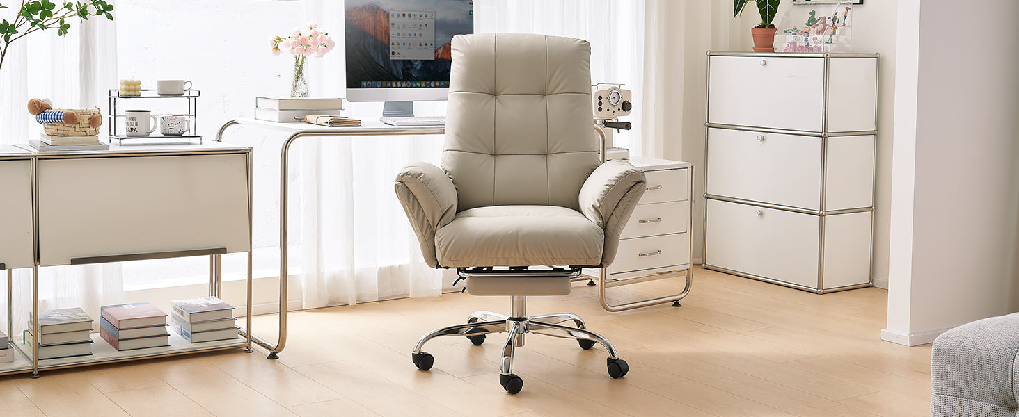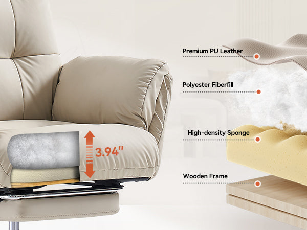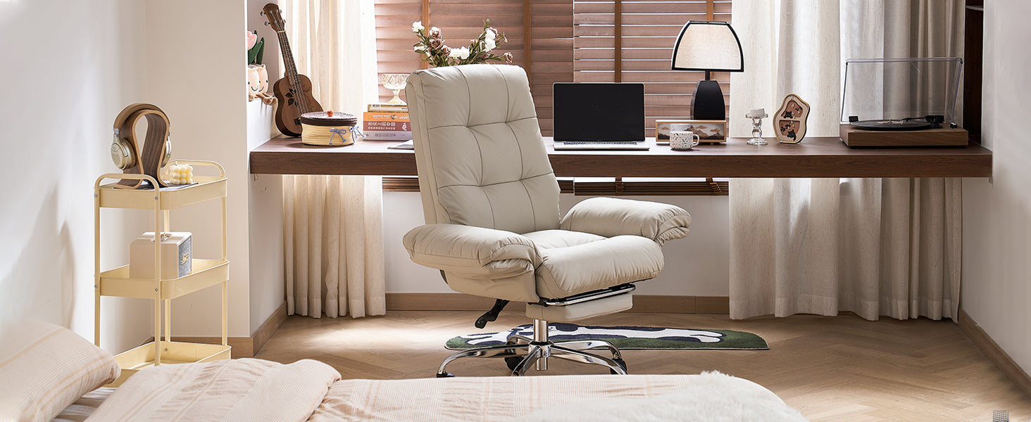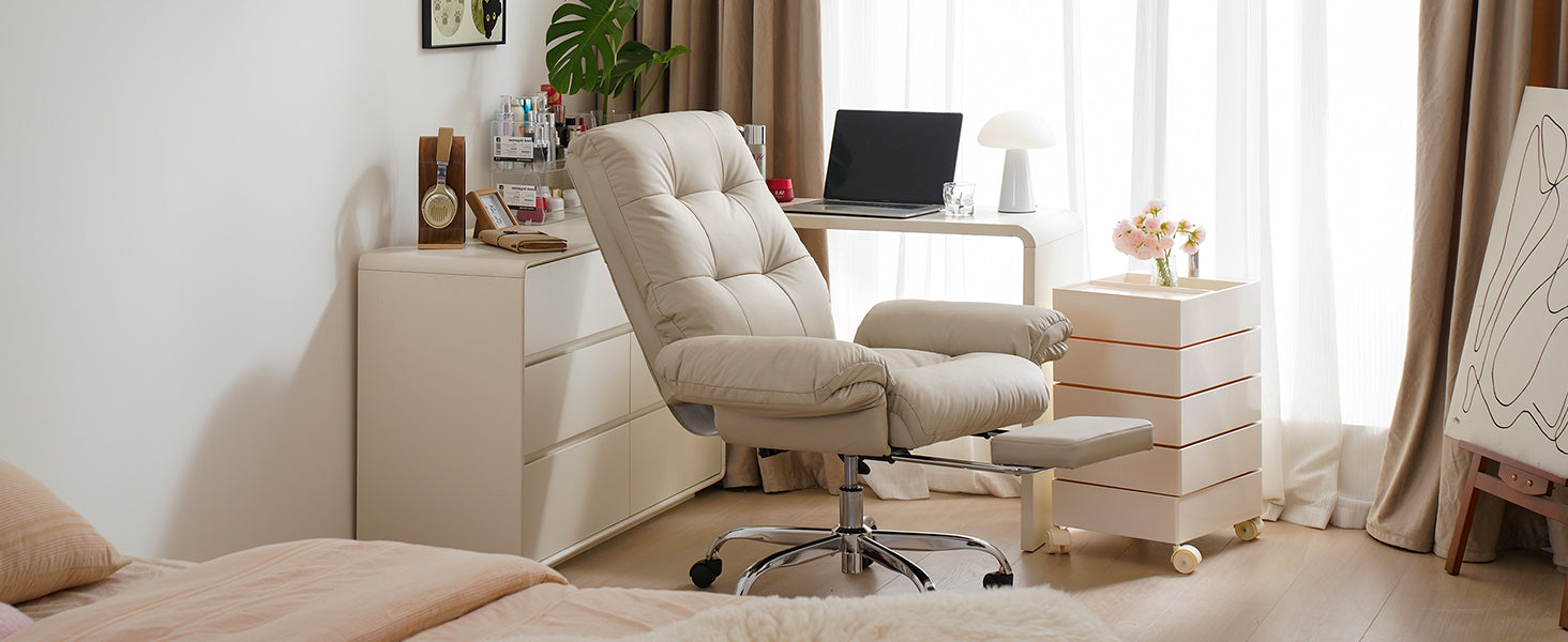 - The wide, thickened PU leather seat offers soft support and easy cleaning, making this beige office chair ideal for all-day sitting.