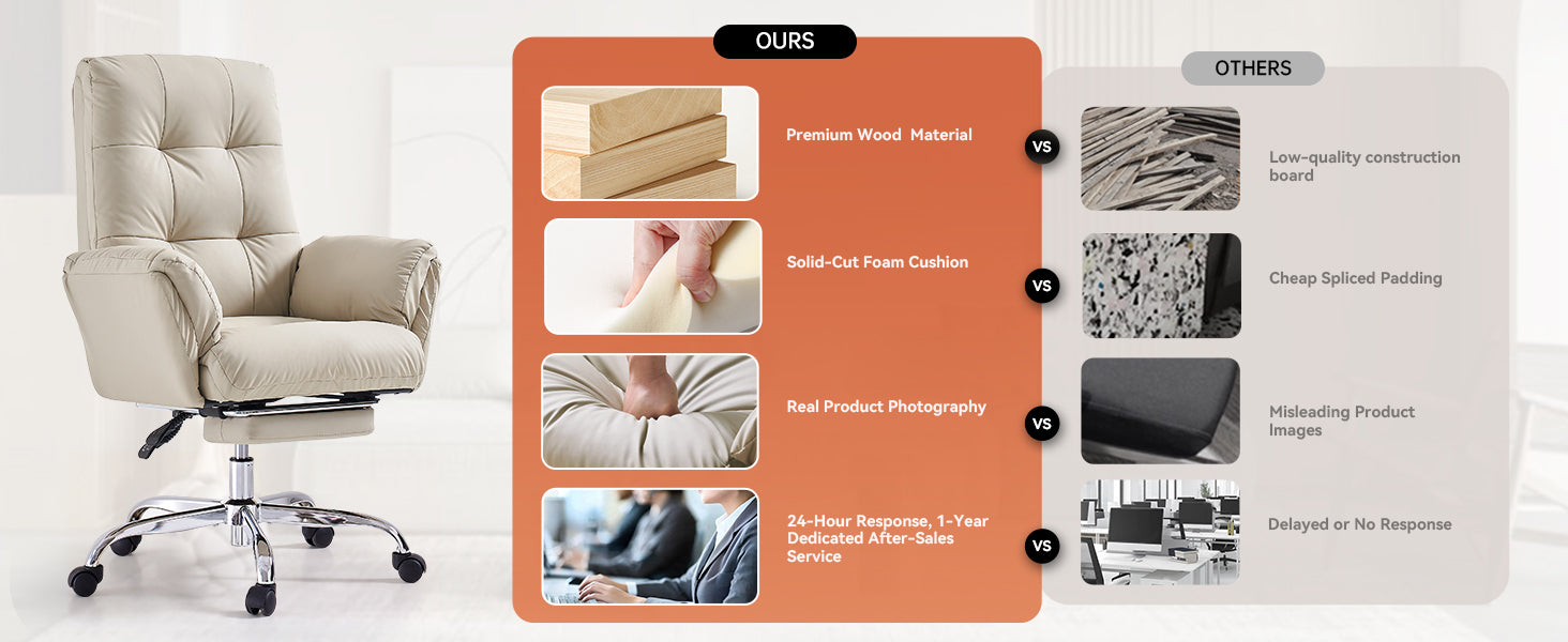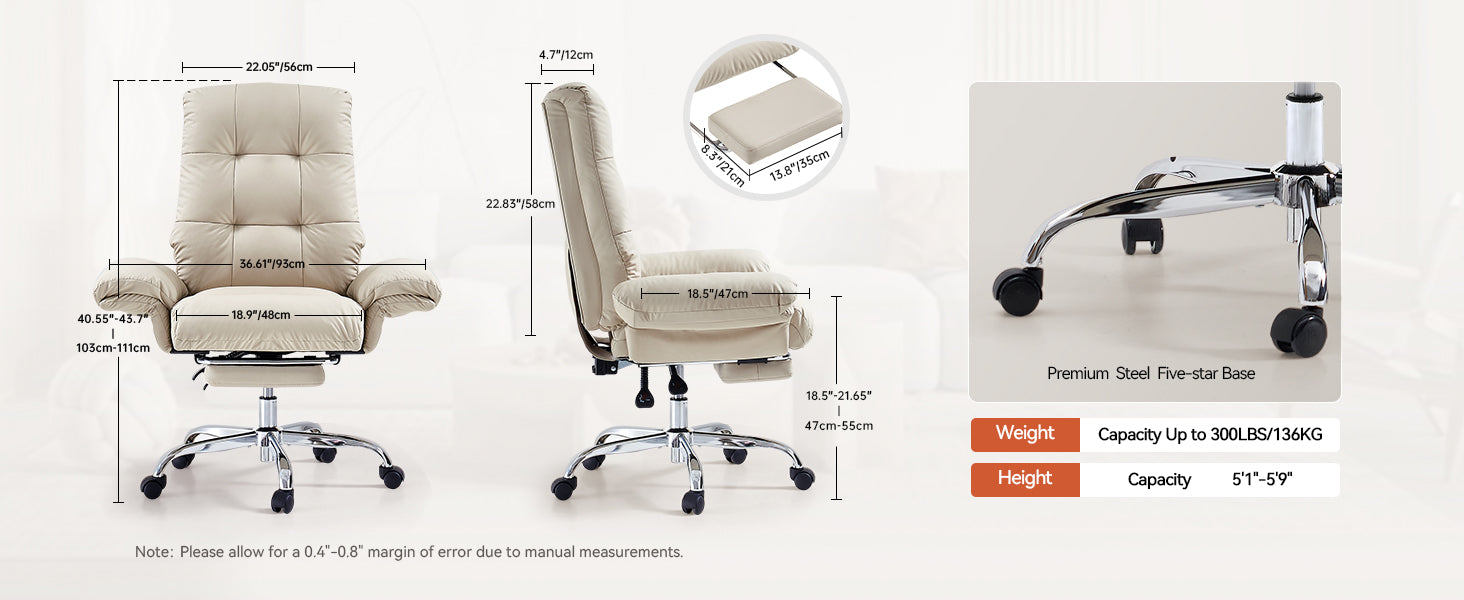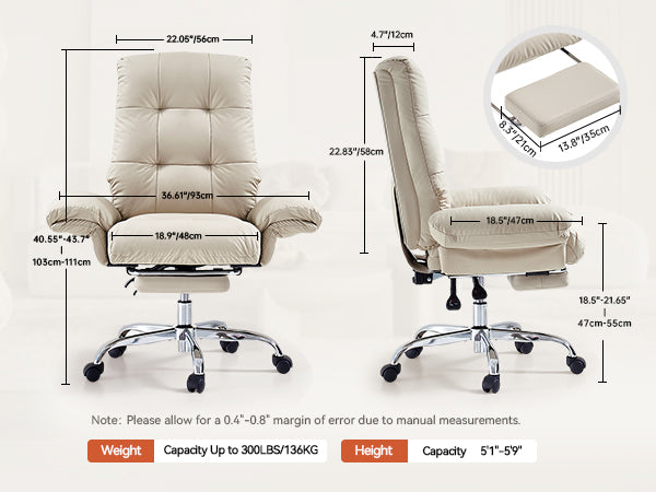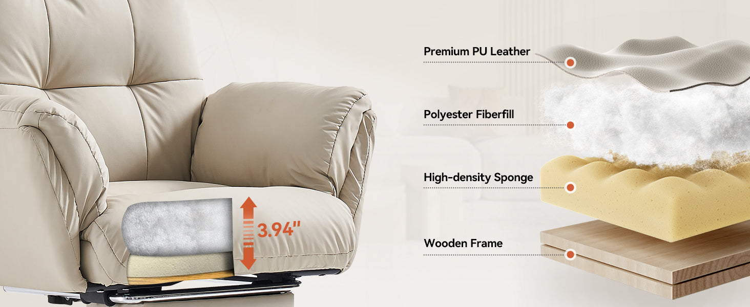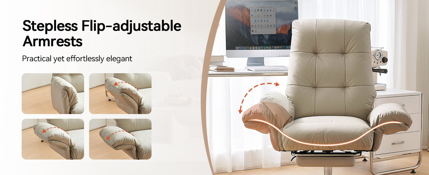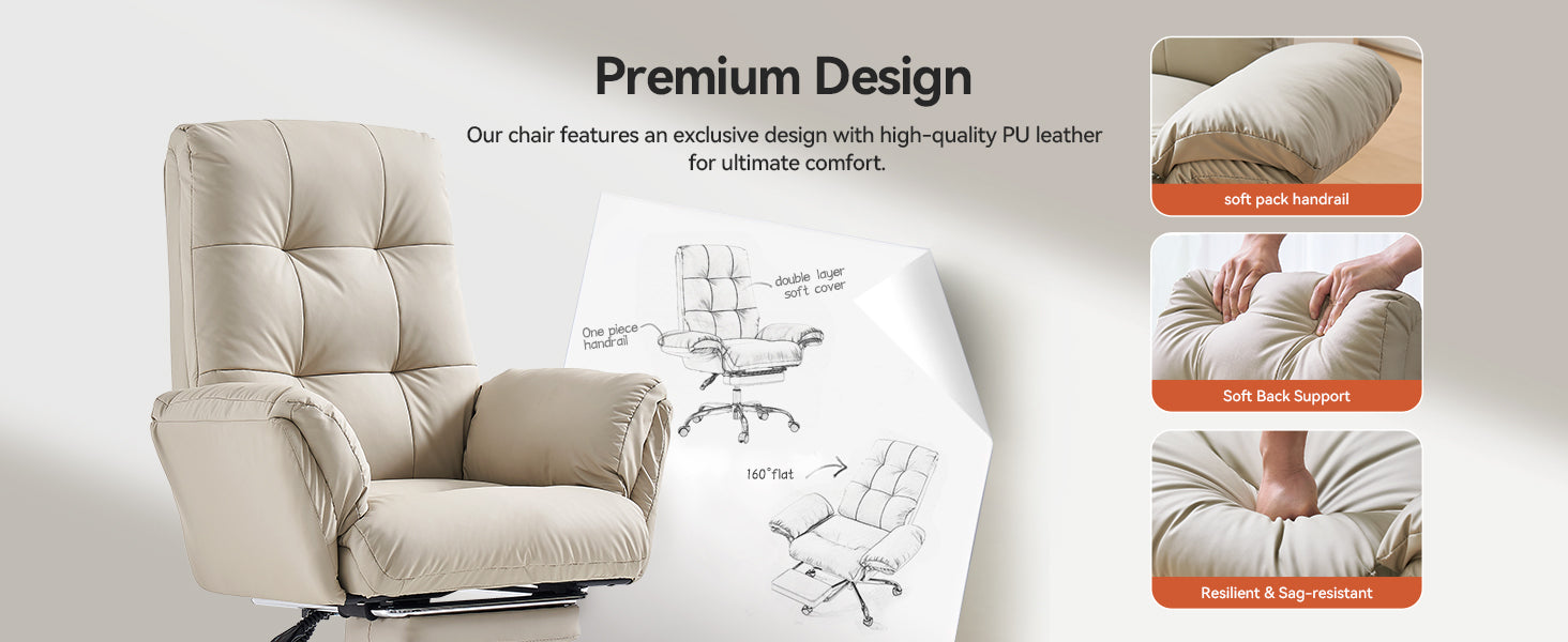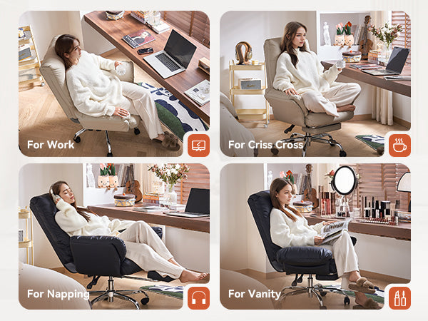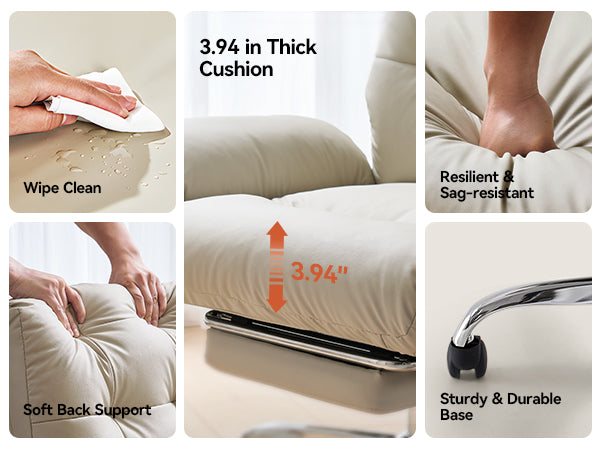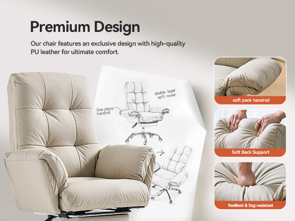- The wide, thickened PU leather seat offers soft support and easy cleaning, making this beige office chair ideal for all-day sitting.