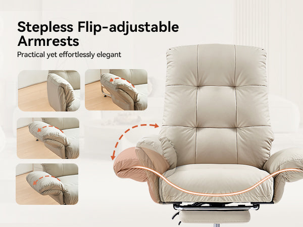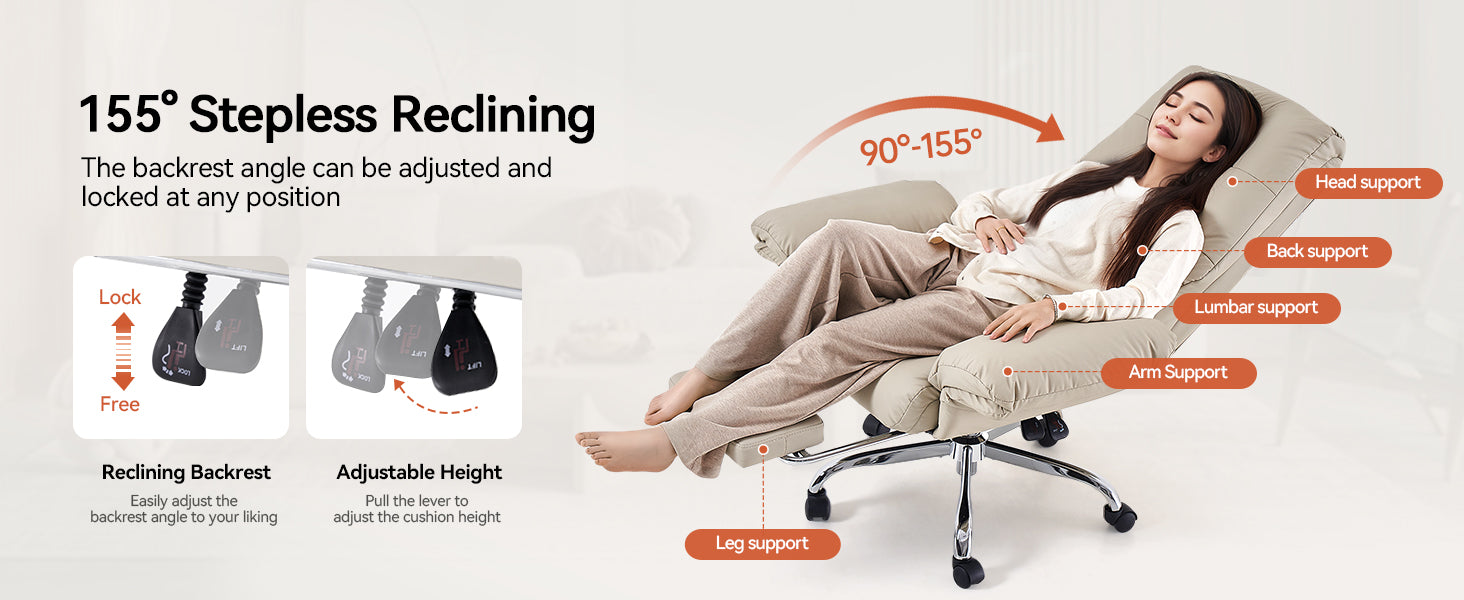 - Enjoy flexible comfort with a reclining backrest adjustable from 90°–155° and a built-in footrest, perfect for working, reading, or relaxing.