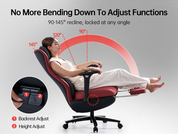 90-145° Recline, Locked at any angle