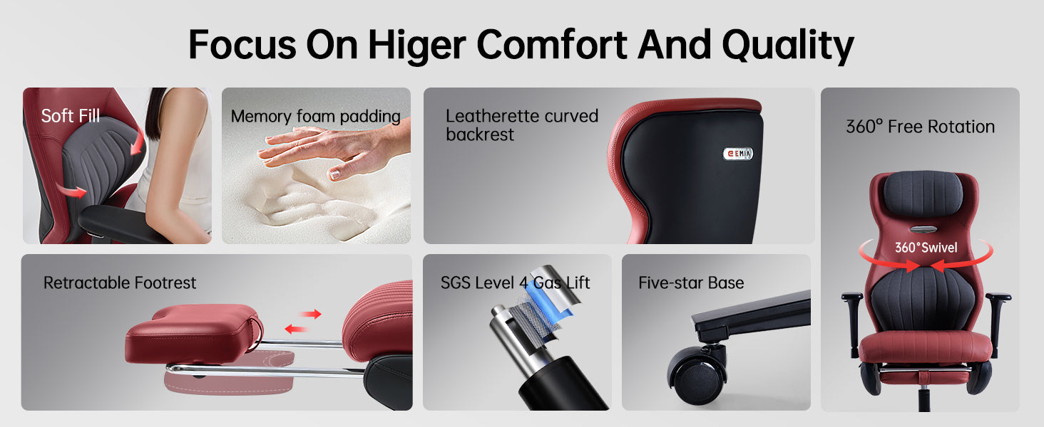 EMIAH GT100 Ergonomic Gaming Chair with Lumbar Support